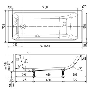 Ванна чугунная 160х70 см белая Wotte Line 1600x700