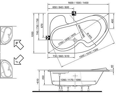 Ванна акриловая 105х140 см правая белая Ravak Rosa I CV01000000