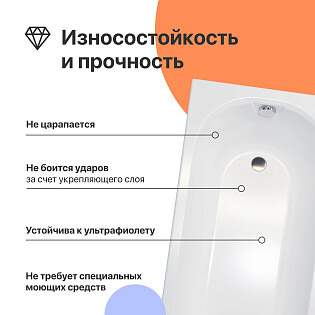 Ванна акриловая 150х70 см белая 1ACReal "Тори" Щ0000042930