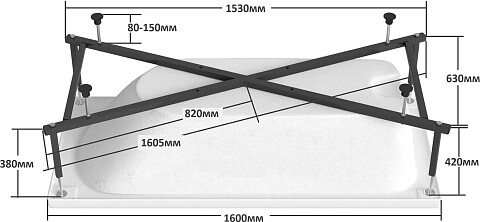 Акриловая ванна с каркасом 160x70 см белая Diwo "Ярославль" 333192, 333202