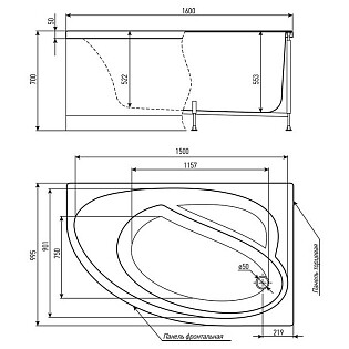 Ванна акриловая 150х95 см обрезанная левая белая 1ACReal "Мадрид" Щ0000045643