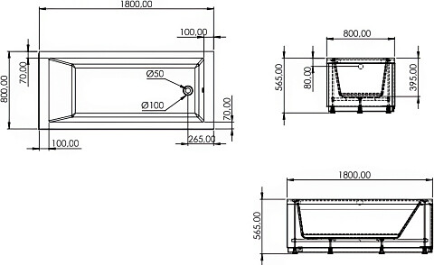 Ванна акриловая прямоугольная 80х180 см белая Artemis Ceres 1011260050102810