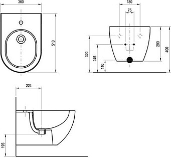 Биде подвесное фарфоровое белое Aquatek "Лугано" AQ1002-00