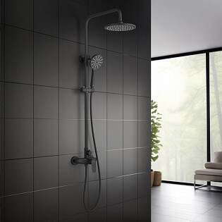 Душевой комплект с тропическим душем черный Stworki "Вирклунд" S05010BK, S05170BK