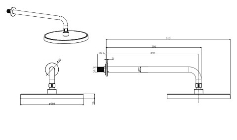 Лейка для верхнего душа круглая с настенным кронштейном 26 см черная Aquatek AQ2080MB