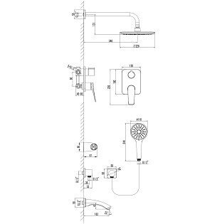 Душевой комплект встраиваемый с изливом черный D&KBayern.Liszt DA1515605A04