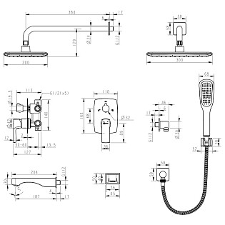 Душевой комплект для душа черный Wasserkraft A20219 SET2210
