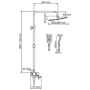 Душевой комплект с верхним душем и лейкой черный, хром Wasserkraft A114.255.218.CB Thermo