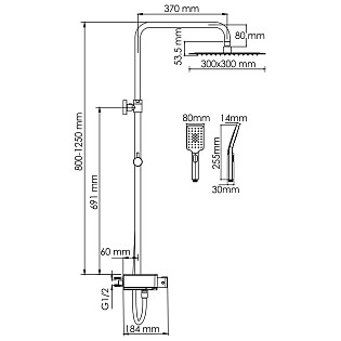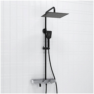 Душевой комплект с тропическим душем и термостатом черный, хром Wasserkraft Thermo A114.162.130.CB