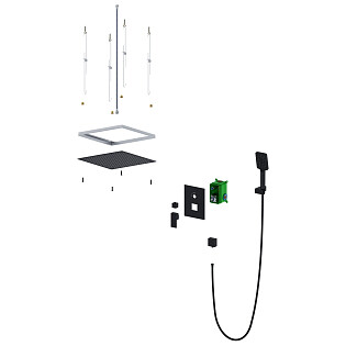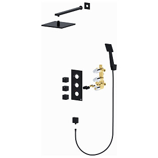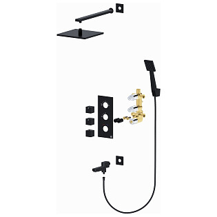 Душевой комплект встраиваемый с верхним душем и лейкой черный Wasserkraft A16160 Thermo