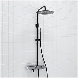 Душевой комплект с верхним душем и лейкой черный, хром Wasserkraft A114.160.218.CB Thermo