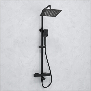 Душевой комплект с верхним душем и лейкой черный Wasserkraft A288.258.078.BM Thermo