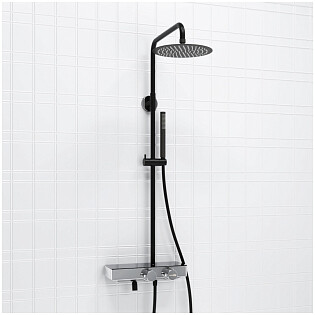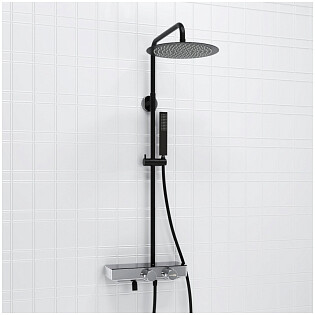 Душевой комплект с верхним душем и лейкой черный, хром Wasserkraft A114.258.217.CB Thermo