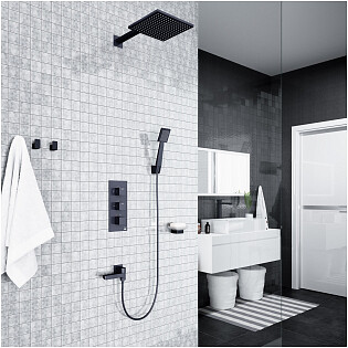 Душевой комплект встроенный с термостатом и тропическим душем черный Timo Petruma SX-5029-03SM
