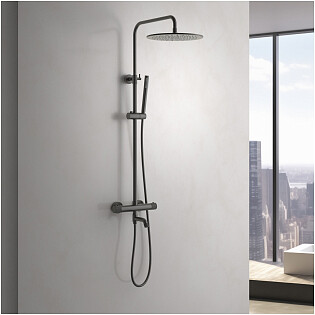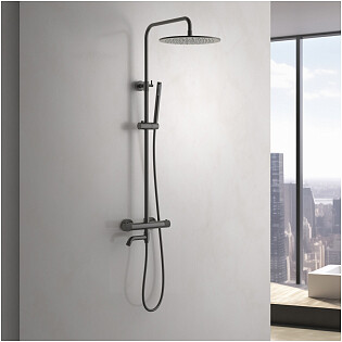 Душевая стойка с верхним душем черная, золотая Stworki "Аулум" S06170BG