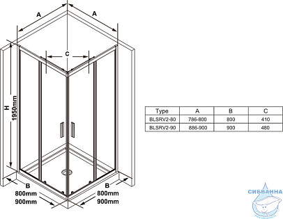 Душевой уголок квадратный 80х80 см черный Ravak Blix Slim BLSRV2-80 X1LM40300Z1