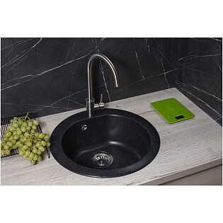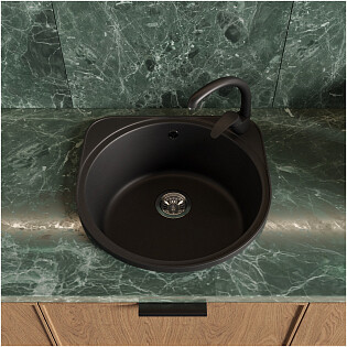 Мойка кухонная круглая мраморная черная Domaci "Бьелла" DMC-05S-308
