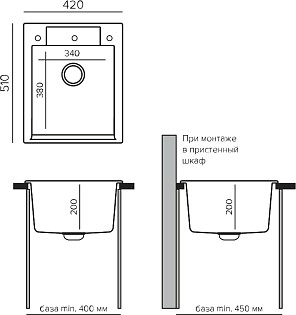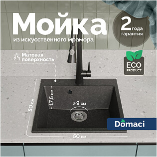 Мойка кухонная из искусственного гранита черная Domaci "Верона" С-25 черная