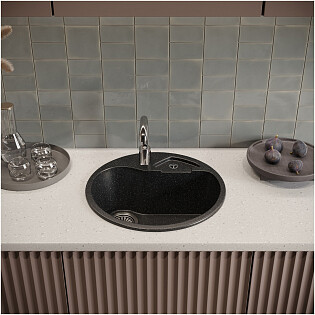 Мойка кухонная кварцевая круглая уголь Reflection Core RX1350СL