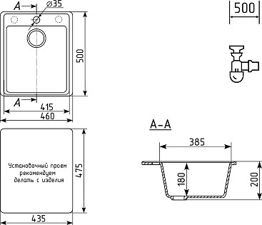 Мойка кухонная матовый черный Domaci "Сиена" 50186-110 3
