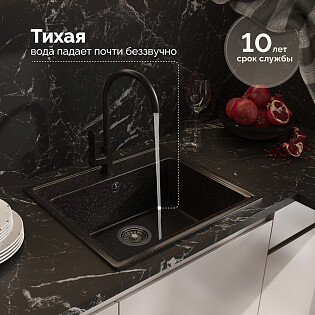 Мойка кухонная черная Domaci "Бьелла" DMC-10 со смесителем Mega Snow MG-SH03