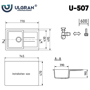 Мойка кухонная из искусственного мрамора черная Ulgran U-507-308