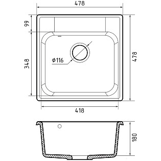 Мойка кухонная квадратная черная GranFest Quarz GF-Z48 48 черный