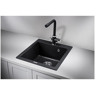 Мойка кухонная кварцевая квадратная черная Point "Арбель 51" PN3001B