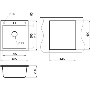 Кухонная мойка кварцевая квадратная черная Granula GR-5102 черный