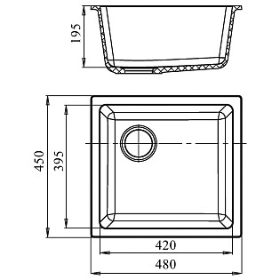 Мойка кухонная кварцевая прямоугольная 46х49 см черная Ewigstein 4540 черный