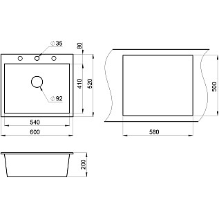 Кухонная мойка кварцевая прямоугольная черная Granula GR-6001 черный