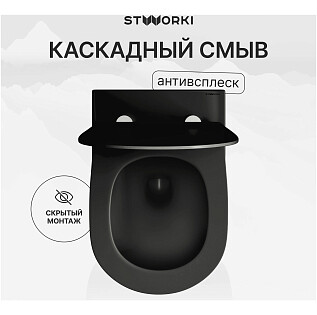 Унитаз подвесной безободковый с микролифтом черный Stworki "Готланд" S13401BK