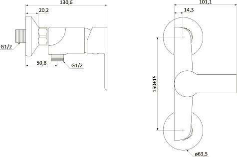 Смеситель для душа встраиваемый однорычажный хром Stworki "Ноттвиль" NO-07cr