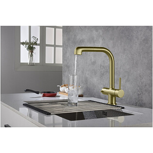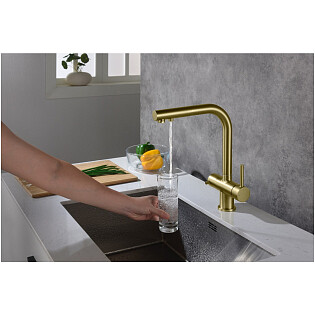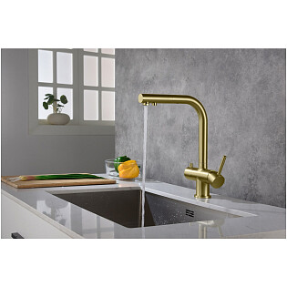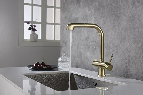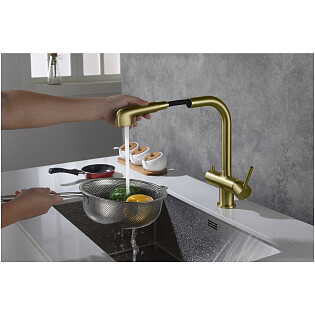 Смеситель для кухни с подключением фильтра и выдвижной лейкой матовое золото Timo Saona 2346-17FL