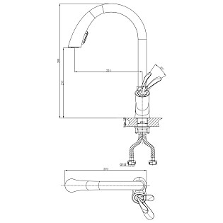 Смеситель для кухни латунный с выдвижной лейкой хром, черный D&K Rhein Schiller DA1462505B