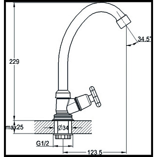 Кран для кухни настенный вентильный хром Solone JIK13-A102-A