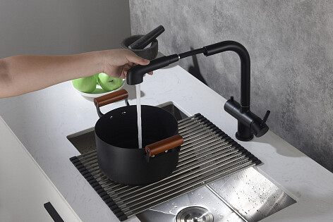 Смеситель для кухни с подключением фильтра и выдвижной лейкой хром Timo Saona 2346-03FL