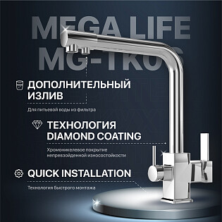 Смеситель для кухни с изливом для фильтрованной воды хром Mega Life MG-TK06