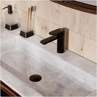 Смеситель для раковины однорычажный черный Stworki "Левангер" S07020BK