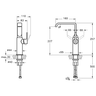 Смеситель для раковины встраиваемый из латуни черный Wasserkraft 3330