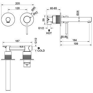 Смеситель для раковины встраиваемый из латуни хром Wasserkraft 8635