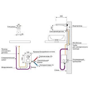 Смеситель для раковины встроенный сенсорный черный Timo Selene 2073-03SM