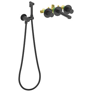 Смеситель для раковины встроенный с гигиеническим душем черный Timo Saona 2383-03SM