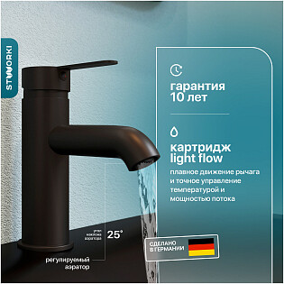 Смеситель для раковины однорычажный черный Stworki "Молде" S23010BK
