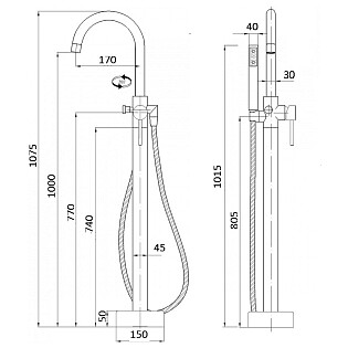 Смеситель для ванны напольный однорычажный с душевым гарнитуром хром Boch Mann Braies BM7772