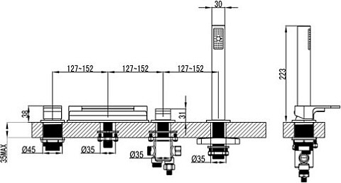Смеситель на борт ванны встраиваемый однорычажный с душевым гарнитуром хром Ravak Chrome X070073