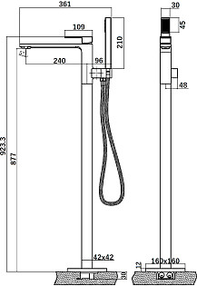 Смеситель для ванны напольный однорычажный с душевым гарнитуром черный Boch Mann Albano Black BM8923