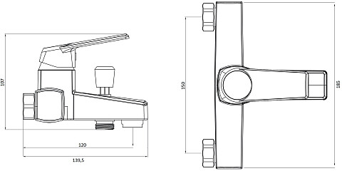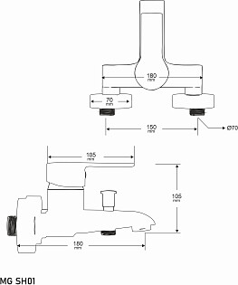 Смеситель для ванны с душем хром Mega Delta MG-SRN100