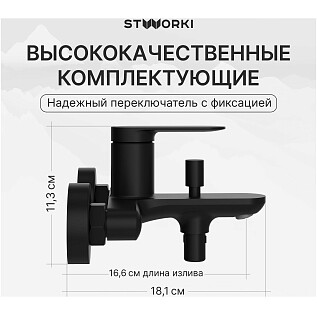 Смеситель для ванны с душем настенный черный Stworki "Копенгаген" S42100BK