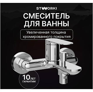 Смеситель для ванны с душем настенный хром Stworki "Ноттвиль" S34100CR